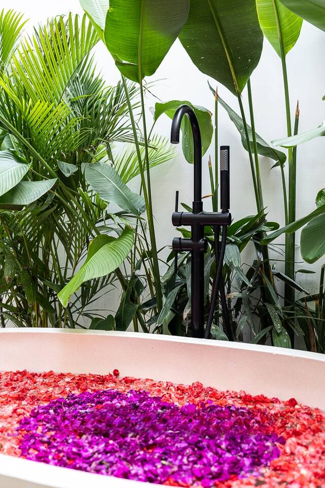 Facilities: - Private deep water well for the safety of your family - Enjoy entertainment with a Smart TV featuring Netflix - Fast WiFi - Harman kardon Sound-bar - Each bedroom is equipped with a laptop-size safety box. - 2 rooftop,bar - 2 Fully equipped kitchen - Kids amenities provided for free - 2 The enclosed living room - Working zone with working desk in every bedroom - private internal garden romantic bathtubs - 2-4 Motor-Bike parking and 2 car parking available in front Included Amenities & Services: - Cleaning services available upon request - six days a week, except Sundays - Bedlinen / Towel changing 2 times a week - Gardening, and pool maintenance. - Mosquito-repelling service. - Complimentary mineral water, coffee, and tea. - Eco-friendly luxury toiletries - Sensatia Botanicals You are welcome to request the following services (at extra charge): - Airport transfer 1,2 MLN for van fits 8-10 people with Standard luggage - Car and driver service available upon request- 1,7 MLN IDR for 10 hours a day. - Car/bike rental service - Grocery shopping based on your list with a handling fee of 15% of the receipt. - Extra single bed with bedsheet set for 300,000 IDR per night. - 3rd baby crib for 150,000 IDR per night/ 3rd high chair for 100,000 IDR per night. - Baby stroller for 140,000 IDR per night. - Pool fence (metal) for 375,000 IDR per night. - Chef cook service - matters of availability. Please NOTE cooking service only, ingredients not included. Shopping fee 15% of ingredients cost Cooking service (breakfast time) Rp. 450,000 Cooking service (launch or dinner time) Rp. 750,000 - STANDARD breakfast can be pre ordered 150,000 per person per night including everything - cooking and ingredients. TYPE 1 eggs (choose your style), tomatoes, bread toasts, jam, butter, variety of fruits/fresh juice+ coffee and tea. TYPE 2 banana pan cakes + jam, butter, variety of fruits /fresh juice + coffee and tea. TYPE 3 Indonesian breakfast - fried rice with vegetables or fried noodle with vegetables and egg +fruits /fresh juice , + coffee and tea.