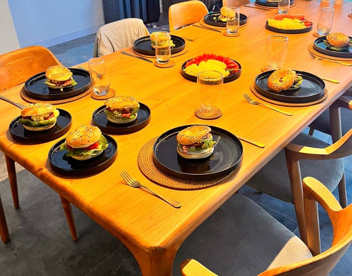 It is centrally located in Canggu, Bali's premier tourist destination, within walking distance of key attractions, shops, rests, spas, and entertainment. The beach is just a short stroll away, and surf spots are easily accessible Space: - 7 bedroom - 7 ensuited private bathrooms - 2 guest toilet ensuited to the living room - 2 Enclosed living room with big screen tv - 2 kitchen is fully equipped - 2 Roof tops - 2 pools - Outdoor garden with 9-meters long swimming pool Capacity & Extra Bedding: Basic capacity 14 adults The maximum capacity is 16 adults, EACH BEDROOM can accommodate one single full-sized extra bed. We have 2 extra bed at the property and provide it for free An additional fee of $20 (300 000 IDR) per night applies for the 3rd and 4 rd single extra bed. Maximum 14 sets of towels provided (56 towels) You may request additional towels or bedsheets, or an extra change of them, for an additional price of 20k per item change. Children up to 8 years old, sharing existing bedding, stay for free. The villa can basic accommodates 16 adults and up to 7 children (sharing existing bedding or using available for free baby cot or extra bed) at the basic price. Family-Friendly Amenities: - A dedicated children's area in the pool with a safe depth of 30 cm. - Complimentary baby amenities (FREE of charge): 2 crib, 2high chair, changing table, a Baby Play Carpet) Party Rules: We do have a policy against large parties and events to ensure the tranquility of our neighbourhood, a small, private celebration (birthdays , hen parties) among the guests staying at the villa is acceptable (up to 16 adults + kids). However, we do ask that noise levels are kept in check, especially after 10 PM, out of respect for our neighbours.