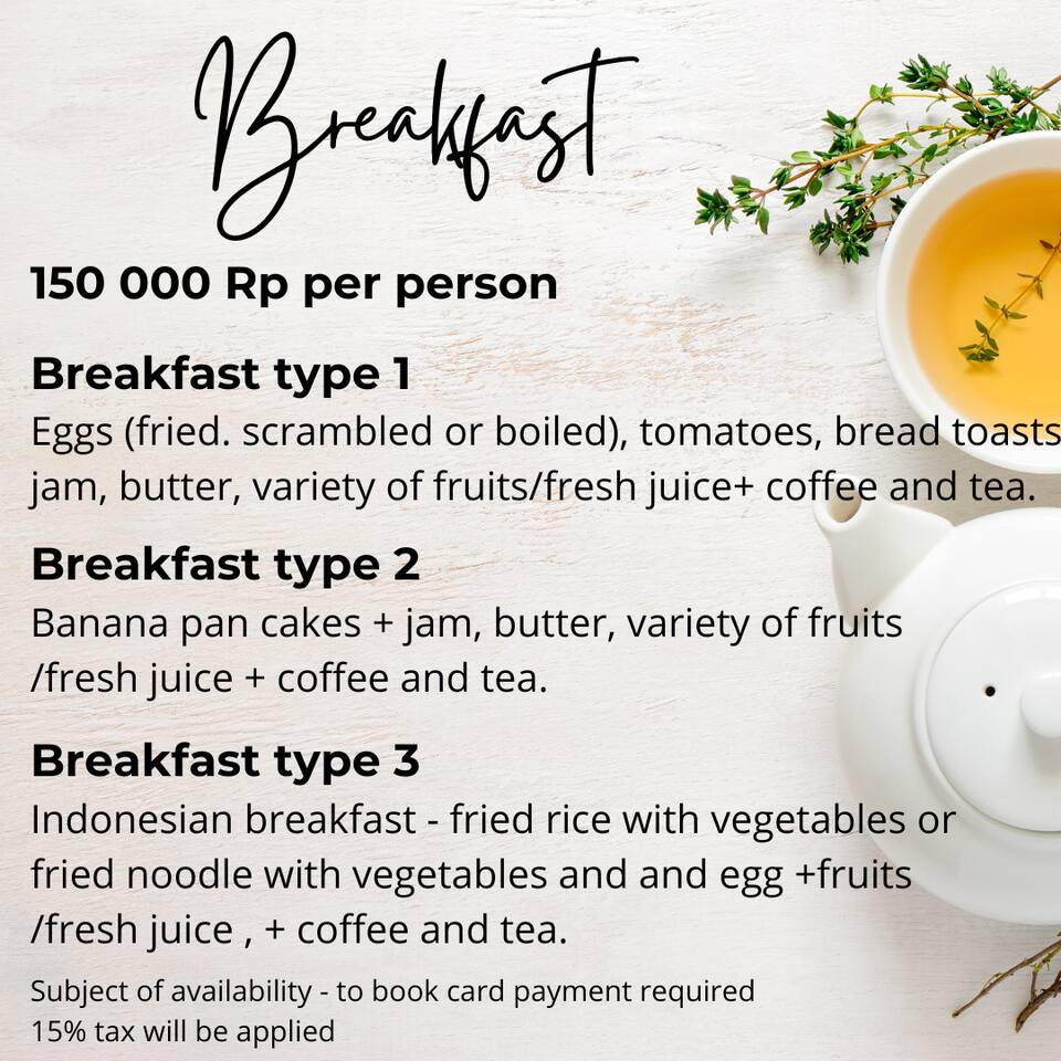 - Breakfast Breakfast is provided